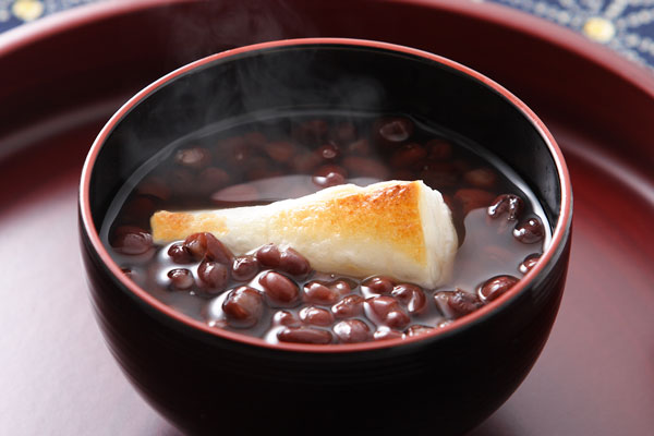 小豆を砂糖で甘く煮て、餅や白玉団子を入れたもの。